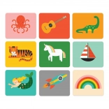 Kolorowe i czytelne obrazki zwierząt, przedmiotów i pojazdów ułatwiają odgadywanie nawet młodszym graczom.