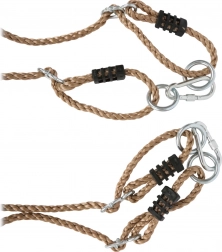 Nylonowe liny z metalowymi przelotkami, pierścieniami i karabinkami zabezpieczającymi zapewniają szybkie, mocne i bezpieczne zawieszenie.