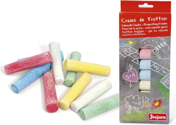Odkryj radość rysowania z dużymi kolorowymi kredami JEUJURA. Dzięki większej średnicy kredy wygodnie trzymają się nawet w mniejszych dłoniach, rysują płynnie i pozostawiają wyrazistą kreskę. Świetne do zabaw na świeżym powietrzu, rysowania klasy i kreatywnego tworzenia.