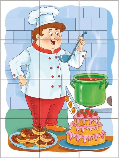 Dzięki tej układance dzieci poznają rozmaite profesje, takie jak policjant, kucharz czy rolnik.