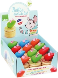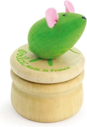 To urocze drewniane pudełko jest idealnym miejscem do przechowywania wypadniętych mlecznych ząbków. Wyprodukowano we Francji z wysokiej jakości materiału i ozdobiono zieloną myszką z różowymi uszkami.