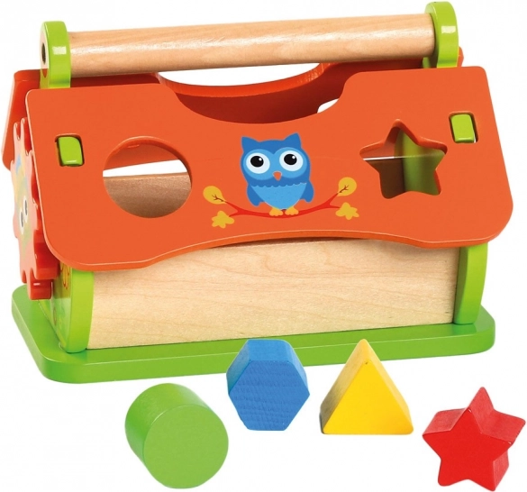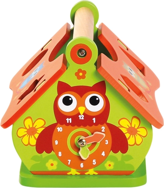 Odkryj uniwersalną drewnianą układankę w kształcie domku, która rozwija dziecięcą wyobraźnię i umiejętności. Dzięki otwieranym połaciom dachu, zegarowi z sową oraz kolorowym kształtom wspiera małą motorykę, rozpoznawanie kształtów i kolorów oraz orientację w czasie. Solidne wykonanie z drewna i praktyczny uchwyt zapewniają bezpieczną zabawę i łatwe przenoszenie.