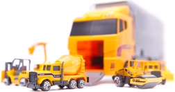 - ciągnik–transporter, 6 szt. mini pojazdów budowlanych
