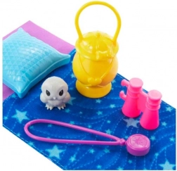 Miękki śpiwór w gwiazdki i poduszeczka zapewnią Chelsea przytulne zasypianie po dniu pełnym przygód.