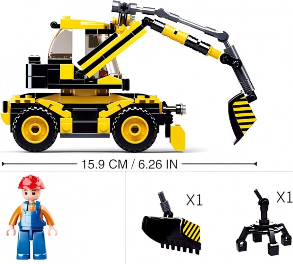 Ten zestaw z serii Sluban Town ucieszy wszystkich małych budowniczych. Koparka kołowa z elementów w żółto-czarnej kolorystyce oferuje funkcjonalne części, takie jak ruchome ramię z łyżką, kabina dla minifigurki oraz solidne koła. Dzięki wysokiej jakości wykonania z bezpiecznego i wytrzymałego plastiku ABS wytrzyma nawet intensywną zabawę.