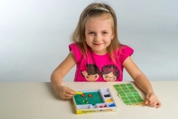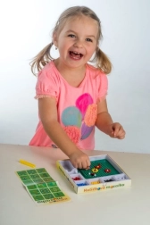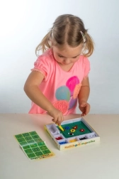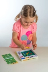Ta mozaika to świetny wybór na pierwsze twórcze zabawy. Dzieci za pomocą pęsety wkładają kolorowe kuleczki w podstawkę i tworzą proste oraz pomysłowe motywy. Aktywność wspiera cierpliwość, koordynację ręka–oko i rozwój motoryki małej.