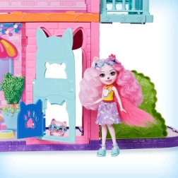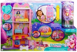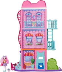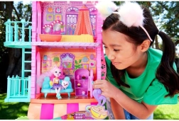 Wejdź do świata ENCHANTIMALS z magicznym miejskim domkiem o wysokości 70 cm i trzema piętrami pełnymi możliwości zabawy. Czeka na ciebie kawiarnia z patio, salon z kuchnią, sypialnia oraz basen na dachu, nie brakuje balkonu, zewnętrznej klatki schodowej i otwieranych drzwi z klapką dla zwierzaka. W zestawie lalka Palmer Pomeranian (15 cm), jej piesek Pommy oraz ponad 15 akcesoriów do nieskończonej wyobraźni i kreatywnej zabawy. Więcej stref zabawy, bogate wyposażenie i bajkowy design ucieszą każdego małego opowiadacza historii.
