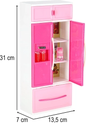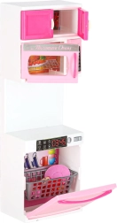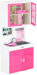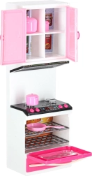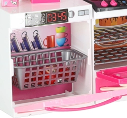 W zestawie znajduje się bogaty komplet akcesoriów: garnki z pokrywkami, patelnia, toster z ruchomą dźwignią, naczynia, kubki, kubeczki, „karton mleka”, przybory kuchenne na haczykach oraz „kostki lodu”. Otwierane szafki, wysuwana szuflada i półki uczą dzieci porządku, rozwijają małą motorykę i umiejętności społeczne.