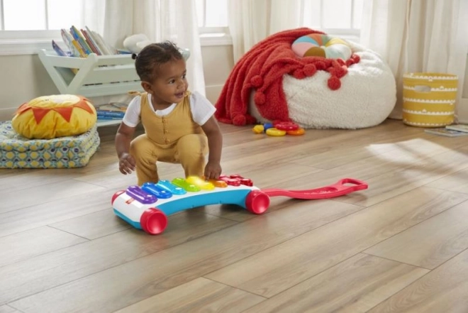 Duży edukacyjny ksylofon od Fisher-Price to nowa wersja klasycznej muzycznej zabawki do ciągnięcia, teraz z jeszcze większą dawką zabawy! Ten wyjątkowo duży interaktywny ksylofon oferuje 8 podświetlanych przycisków, które uruchamiają ponad 60 aktywacji dźwiękowych, w tym różne odgłosy, piosenki i wypowiedzi. Zabawka jest wyposażona w solidną składaną rączkę, dzięki czemu mali muzycy mogą bawić się zarówno na siedząco, jak i podczas spacerów z ciągniętym ksylofonem. Technologia poziomów nauki pozwala zmieniać sposób zabawy wraz z rozwojem dziecka. Edukacyjne zwroty i piosenki uczą między innymi alfabetu, cyfr i kształtów, a także prostych słów po angielsku. Naciśnij przycisk z globusem, aby wybrać język: czeski, polski, węgierski, słowacki lub angielski.