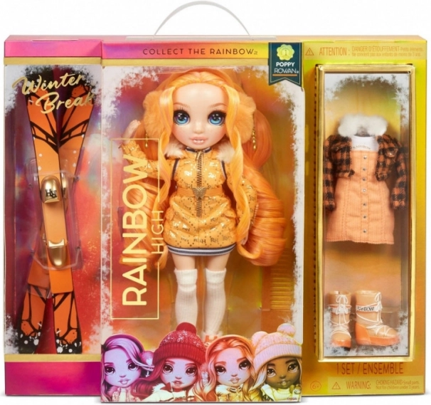 Dołącz do Poppy Rowan na zimowych przygodach z tą piękną modową lalką z serii Rainbow High. Każda lalka w tej kolekcji posiada unikalne zimowe ubrania i akcesoria, które podkreślają jej osobisty styl i gotowość do sportów zimowych.