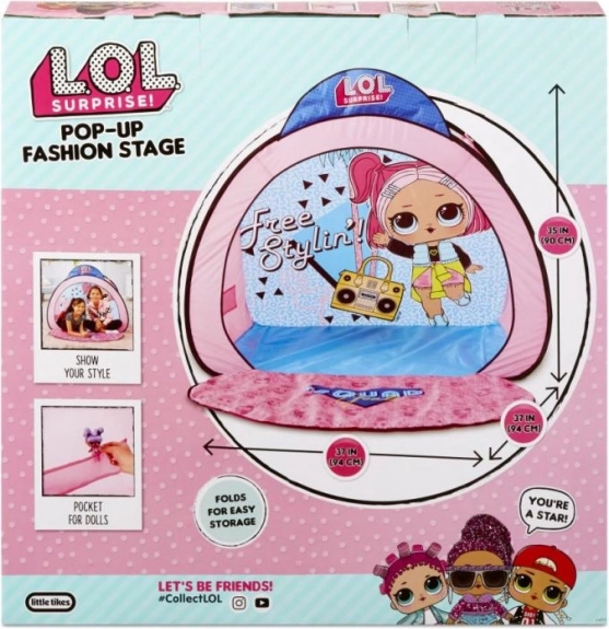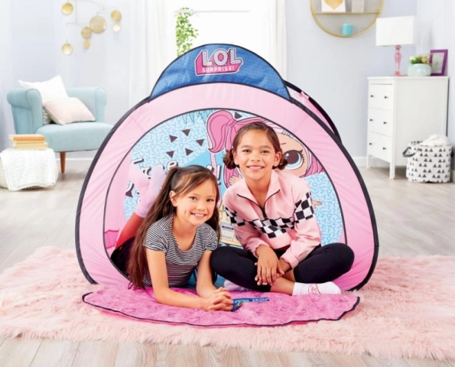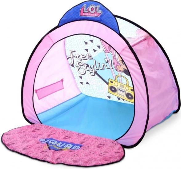 Namiot zdobią wizerunki stylizowanych postaci z LOL Surprise, które zapewniają interaktywną i magiczną zabawę.