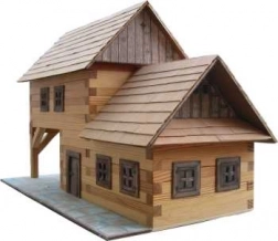 - Kompletny zestaw elementów w tym papierowe dodatki – okna, drzwi, elementy dachu i inne.