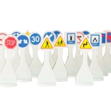 Zabawny i edukacyjny zestaw dla dzieci od 5 lat zawiera 50 najsłynniejszych znaków drogowych na stabilnych plastikowych podstawkach. Pomaga ćwiczyć zasady ruchu drogowego, rozwija motorykę małą i wspiera naukę poprzez zabawę w domu i w szkole.
