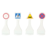 Szeroki wybór najczęściej używanych znaków w różnych kształtach i kolorach pozwala dzieciom tworzyć realistyczne sytuacje drogowe i uczyć się bezpiecznie poprzez zabawę.