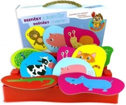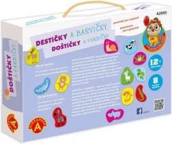 - Duże kolorowe płytki z obrazkami, instrukcja po polsku i słowacku, pudełko z rączką