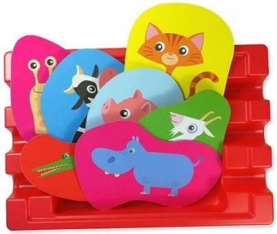 Wytrzymałe tekturowe płytki łatwo się chwyta i wspierają rozwój małej motoryki oraz koordynacji.