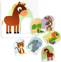 Ta prosta gra edukacyjna jest idealna do pierwszej nauki przez zabawę. Dzieci dopasowują małe i duże zwierzątko, badają kształt, właściwe ułożenie i wkładają wyjmowane elementy w odpowiadające im otwory na płytkach. Każda prawidłowo dobrana para wzmacnia pewność siebie i chęć odkrywania.