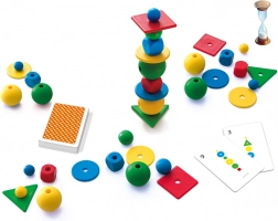 Czekają na was 3 warianty rozgrywki: wyścig o najszybsze ułożenie zadanego wzoru, budowa jak najwyższej wieży oraz tryb zręcznościowy z naciskiem na stabilność i równowagę. Dzięki różnorodnemu zestawowi elementów i 16 kartom ze wzorami każda partia jest inna i pełna emocji.