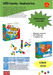 Zabawna rodzinna gra dla 2–4 graczy od 6 lat, w której sprawdzicie swoją cierpliwość, precyzję i zręczność. Budujcie wieże z różnie kształtowanych elementów w trzech wariantach rywalizacji i cieszcie się emocjami oraz śmiechem. Trzymajcie równowagę, ile się da – wygrywa ten, kto najszybciej zbuduje wzór lub stworzy najwyższą stabilną wieżę.