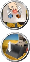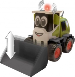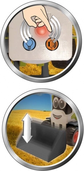 Ta urocza ładowarka CLAAS Mini w zielonym kolorze z czarnymi kołami i czerwonymi detalami zachwyci najmłodsze dzieci realistycznymi funkcjami. Po naciśnięciu przycisku słychać dźwięk silnika i włączają się światła ostrzegawcze. Ręcznie sterowana łyżka umożliwia łatwe podnoszenie i opuszczanie, co wspiera motorykę małą.