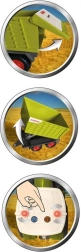• Efekty dźwiękowe i świetlne – po naciśnięciu przycisku na kabinie traktor symuluje dźwięk silnika i włączają się światła ostrzegawcze.