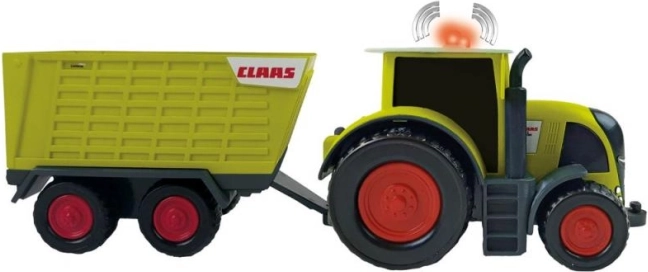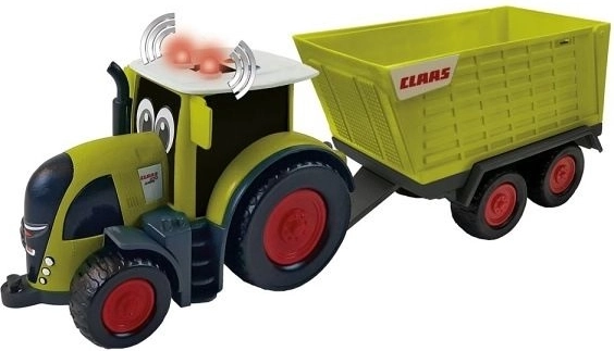 Traktor Claas z przyczepą oferuje autentyczne doświadczenie farmy dla małych dzieci. Zabawka jest wykonana z zielonego plastiku z czarnymi i czerwonymi elementami, a jej długość wynosi około 28 cm. Dzięki słodkim oczkom zdobiącym traktor, przynosi radość i uśmiech na twarzach dzieci. Przeznaczona jest dla dzieci od 12 miesięcy i zaprojektowana z myślą o bezpieczeństwie, z zaokrąglonymi rogami i krawędziami.