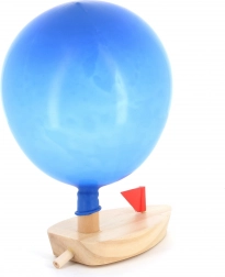 Przynieś do domu zabawę z tą drewnianą łódką na napęd balonowy. Dzieci mogą łatwo nadmuchać balon, podłączyć go do łódki i obserwować, jak płynie naprzód. Ten prosty, ale efektywny design uczy dzieci o zasadach ruchu i jednocześnie dostarcza im zabawy. Idealna zabawka na radosne spędzenie czasu w wannie lub basenie.