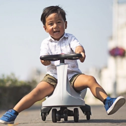 Szary Didicar to sprytny jeździk, który porusza się bez łańcuchów, silnika i baterii – wystarczy obracać kierownicę z boku na bok. Dzięki niskiemu środkowi ciężkości, wygodnemu siodełku i stabilnej podstawie jazda jest płynna i bezpieczna zarówno w pomieszczeniach, jak i na zewnątrz na asfalcie lub betonie. Certyfikacja na rynek europejski i amerykański podkreśla nacisk na bezpieczeństwo i jakość.