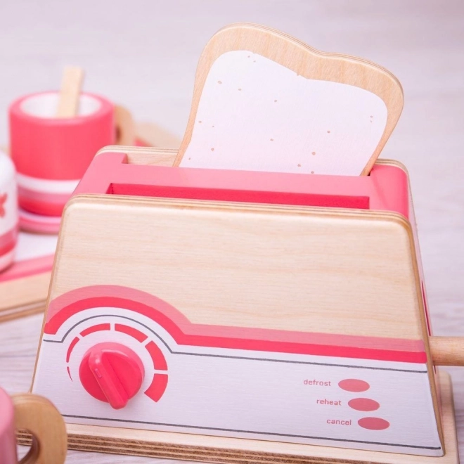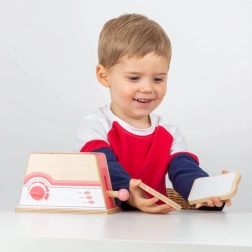 Toster wykonany jest z wytrzymałego drewna z zaokrąglonymi krawędziami, co zapewnia bezpieczną zabawę. Odpowiedni do każdej dziecięcej kuchni.