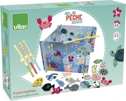 Odkryj urok morskiego świata z grą Vilac Łowienie morskich zwierzątek. Dzieci będą się świetnie bawić zarówno rywalizując, jak i współpracując przy łowieniu uroczych rybek i stworzeń na magnetyczne wędki. Piękne ilustracje autorstwa Michelle Carlslund oraz wysokiej jakości drewniane elementy zapewniają długą trwałość i przyjemność wizualną.