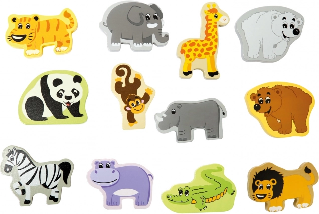 - 12 drewnianych figurek egzotycznych zwierząt + walizeczka (łącznie 13 elementów)