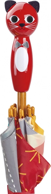 Nasz dziecięcy parasol posiada zabawne wzory, które uprzyjemnią codzienne spacery nawet w deszczową pogodę. Ergonomiczny uchwyt w kształcie kota jest zaprojektowany dla wygodnego chwytu i wykonany z wysokiej jakości drewna. Metalowa konstrukcja gwarantuje wytrzymałość i stabilność.