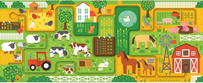Zabawne i edukacyjne puzzle dla najmłodszych. Ułóż 10 dużych elementów i podążaj palcem po labiryncie przez farmę. Dzieci podczas zabawy rozwijają małą motorykę, koncentrację i spostrzegawczość, gdy szukają 20 różnych przedmiotów na ilustracji. Puzzle wykonano z papieru z recyklingu i zadrukowano farbami na bazie roślin, spełniają surowe standardy bezpieczeństwa i są idealne dla dzieci od 2 lat.