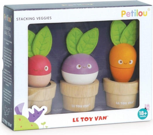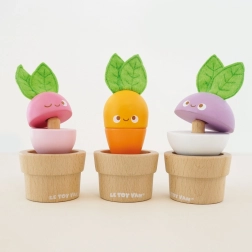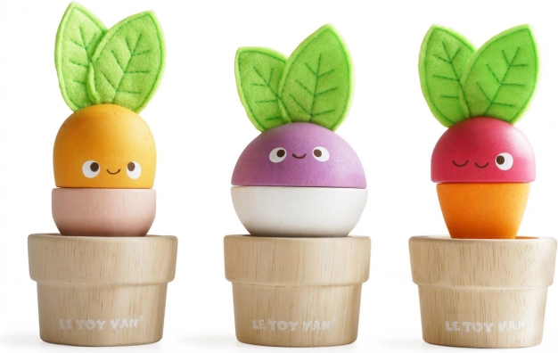 Uroczy zestaw drewnianych doniczek z warzywami od LE TOY VAN wspiera motorykę małą, koordynację ręka–oko oraz wyobraźnię. Dzieci mogą mieszać i składać poszczególne elementy w marchewkę, rzodkiewkę i buraka albo tworzyć własne kombinacje. Zabawka wykonana jest z zrównoważonego drewna, ma filcowe listki i jest ręcznie domalowywana nietoksycznymi farbami na bazie wody.