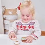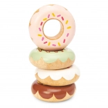 Ten zestaw drewnianych donutów od Le Toy Van jest nie tylko estetyczny, ale przede wszystkim bezpieczny i wykonany z litego drewna. Każdy donut ma delikatnie zaokrąglone krawędzie dla bezpiecznej zabawy i jest ozdobiony pastelowymi odcieniami z różnymi wzorami posypek. Wodne farby użyte przy ręcznym wykończeniu są nietoksyczne i całkowicie bezpieczne dla dzieci.