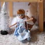 Lalka ubrana jest w przepiękną niebieską suknię z lodowymi detalami i srebrnymi płatkami. Marzy o magicznym balu jako Królowa Śniegu.
