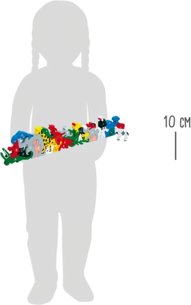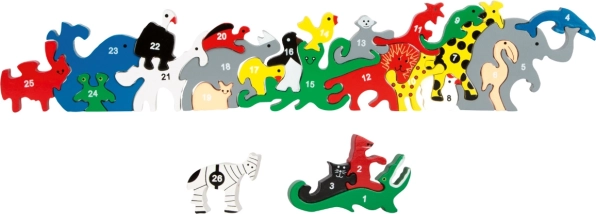 Składają się z 26 elementów, każdy z nich reprezentuje jakieś zwierzę i jest oznaczony cyfrą z jednej strony oraz literą alfabetu z drugiej strony. Wspiera motorykę małą i rozwija twórcze myślenie.