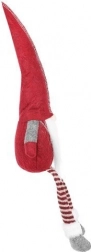 Świąteczny skrzat w czerwonych tonach zachwyca figlarnym wyglądem – wysoka spiczasta czapka, puszysta biała broda i paskowane nóżki staną się nie do przeoczenia sezonową dekoracją. Dzięki solidnemu wykonaniu z filcu i wytrzymałego tworzywa jest lekki, a zarazem mocny i gotowy, by zdobić Twój dom przez całą zimę.