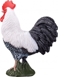 Wiernie ukształtowane pióra, kontrastowe czarno-białe ubarwienie oraz czerwony grzebień zapewniają autentyczny wygląd koguta.
