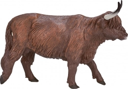 Szczegółowy plastikowy model Szkockiego bydła wyżynnego z długą teksturą sierści i wyrazistymi rogami.