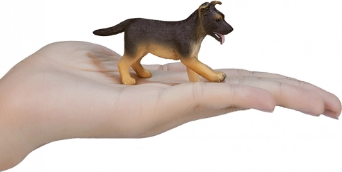 Odkryj precyzyjnie wykonaną figurkę szczenięcia owczarka niemieckiego, która wiernie oddaje typowe ubarwienie i cechy tej lubianej rasy. Dzięki kompaktowemu rozmiarowi świetnie pasuje do dziecięcych światów zabawy, a także ucieszy miłośników i kolekcjonerów realistycznych modeli zwierząt.