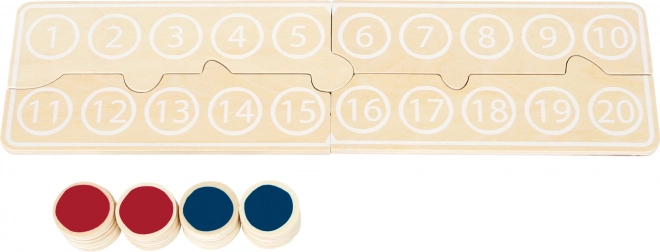 Kolorowe żetony i czytelna tablica z liczbami 1–20 pozwalają dzieciom łatwo układać zadania i widzieć wyniki przed oczami.