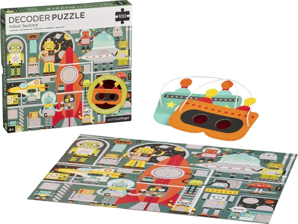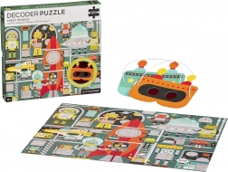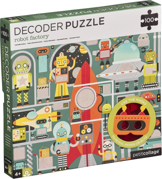 Wejdź do świata robotów i ich fabryki! Ułóż puzzle z 100 elementów i dzięki specjalnej masce dekodującej odkrywaj ukryte detale potrzebne do ukończenia statku kosmicznego. Ten sprytny dodatek zamienia układanie w interaktywną grę, która rozwija logikę, spostrzegawczość i motorykę małą.