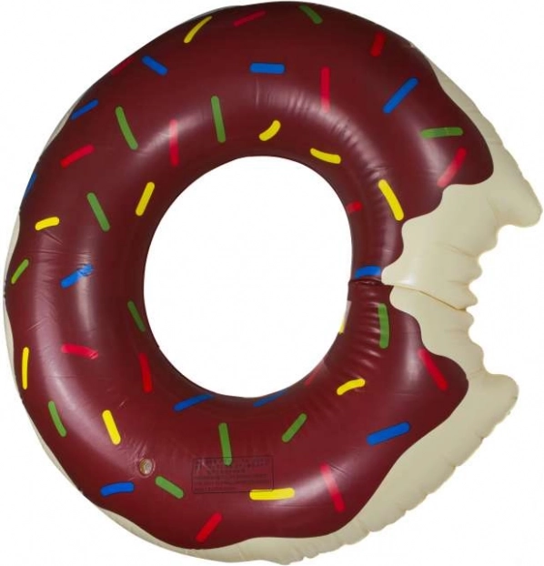 Motyw nadgryzionego pączka z czekoladową polewą i kolorową posypką jest nie tylko atrakcyjny, ale też doskonale widoczny na tafli wody. Koło nadaje się do pływania, figlowania i nabierania pewności w wodzie.