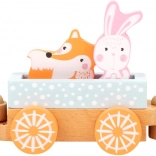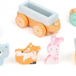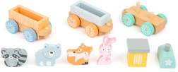 Drewniany pociąg to świetna zabawa dla dzieci od 18 miesięcy. Ten wspaniały zestaw zawiera kolorowe wagony, które są łatwo połączalne, oraz cztery figurki uroczych zwierzątek - lis, zając, szop pracz i niedźwiedź. Lokomotywa i wagony wykonane są z wysokiej jakości drewna i zaprojektowane tak, aby były bezpieczne dla najmłodszych dzieci. Dzięki pastelowym kolorom i prostej konstrukcji ten zestaw jest idealny do rozwijania wyobraźni i umiejętności motorycznych twojego dziecka.
