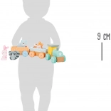 Ten pociąg składa się z lokomotywy i dwóch łatwo połączalnych wagonów, które twoje dzieci pokochają dzięki ich pastelowym kolorom.