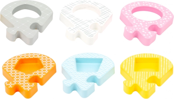 Wysokiej jakości drewniane wykończenie, gładkie krawędzie i trwałość do codziennej zabawy. Odpowiednie dla małych rączek i pierwszych układanek.