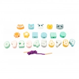Zabawny i edukacyjny zestaw koralików do nawlekania dla najmłodszych w delikatnych pastelowych kolorach. Dzieci podczas zabawy ćwiczą małą motorykę, koordynację ręka–oko i w naturalny sposób poznają podstawy liczenia dzięki cyfrom 0–9 oraz uroczym zwierzątkom. Drewniane zakończenia sznureczków ułatwiają nawlekanie i wspierają kreatywność przy tworzeniu własnych kombinacji.