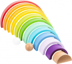 14 kolorowych łuków można układać w tęczę, mosty, tunele i wieże. Dzieci trenują równowagę i wyobraźnię przy każdej nowej kombinacji.