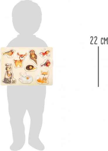 - 9 elementów do wkładania z leśnymi zwierzątkami – sarna, zając, jeż i inni